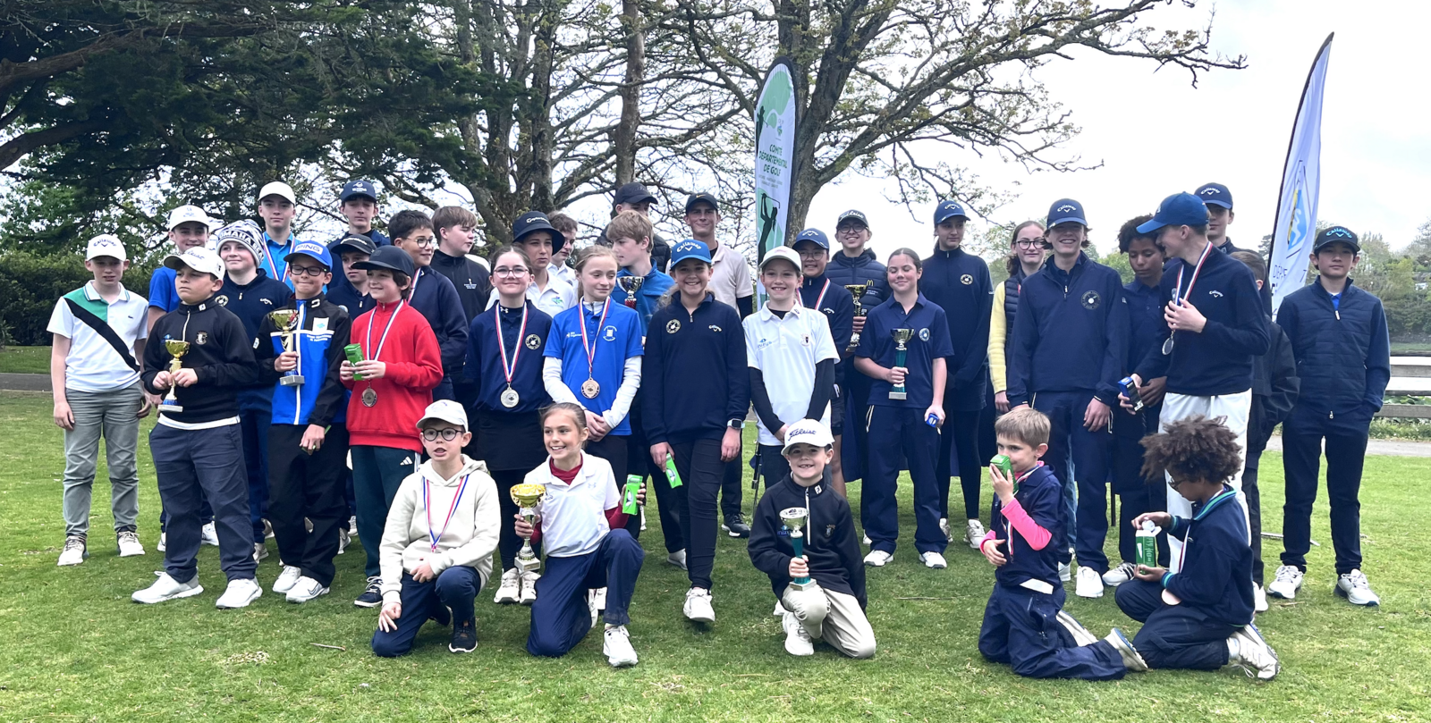Mardi 14 et mercredi 15 avril, Cornouaille accueillait les Championnats du Finistère Jeunes et plus de 50 joueuses et joueurs de 7 à 17 ans venus de tous les club du département. L'Ecole de Golf de Cornouaille récolte deux titres de champions du Finistère avec Vadim Jeantet en U8 et Gaspard Chapuis en U12 et un titre de vice-champion avec Lazlo Le Berre-Fischer en U16. Bravo à nos jeunes champions et un grand merci à Pierre Rillaerts pour l'organisation et à nos nombreux bénévoles pour l'accompagnement des parties.