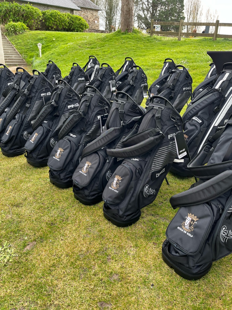 Chaque jeune de l'EDG s'est vu attribuer un nouveau sac de golf Ping noir aux couleurs de Cornouaille et de notre sponsor sac Isi-Fish avec en prime son prenom brodé sur un scratch amovible. Comme de vrais petits pros.
